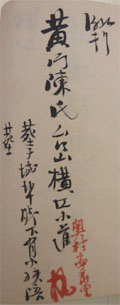 Fig. 3. The writing indicates that Mrs. Huang of the Chen family was buried in Victoria with her child. The red ink was added to the list to show that the bones were dug up, and that she was affiliated with the Ningyi Tang.