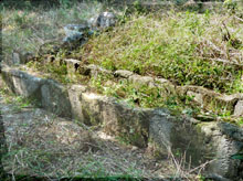 The Jinniushan 金牛山 Cemetery, Xinhui. Like the Huangkang Cemetery, a burial ground for unclaimed bodies returned from overseas. The image on the right shows how inscribed tile markers for each burial were set in concrete. The image on the left shows burial jars that have been uncovered by farm workers digging at the edge of the cemetery.